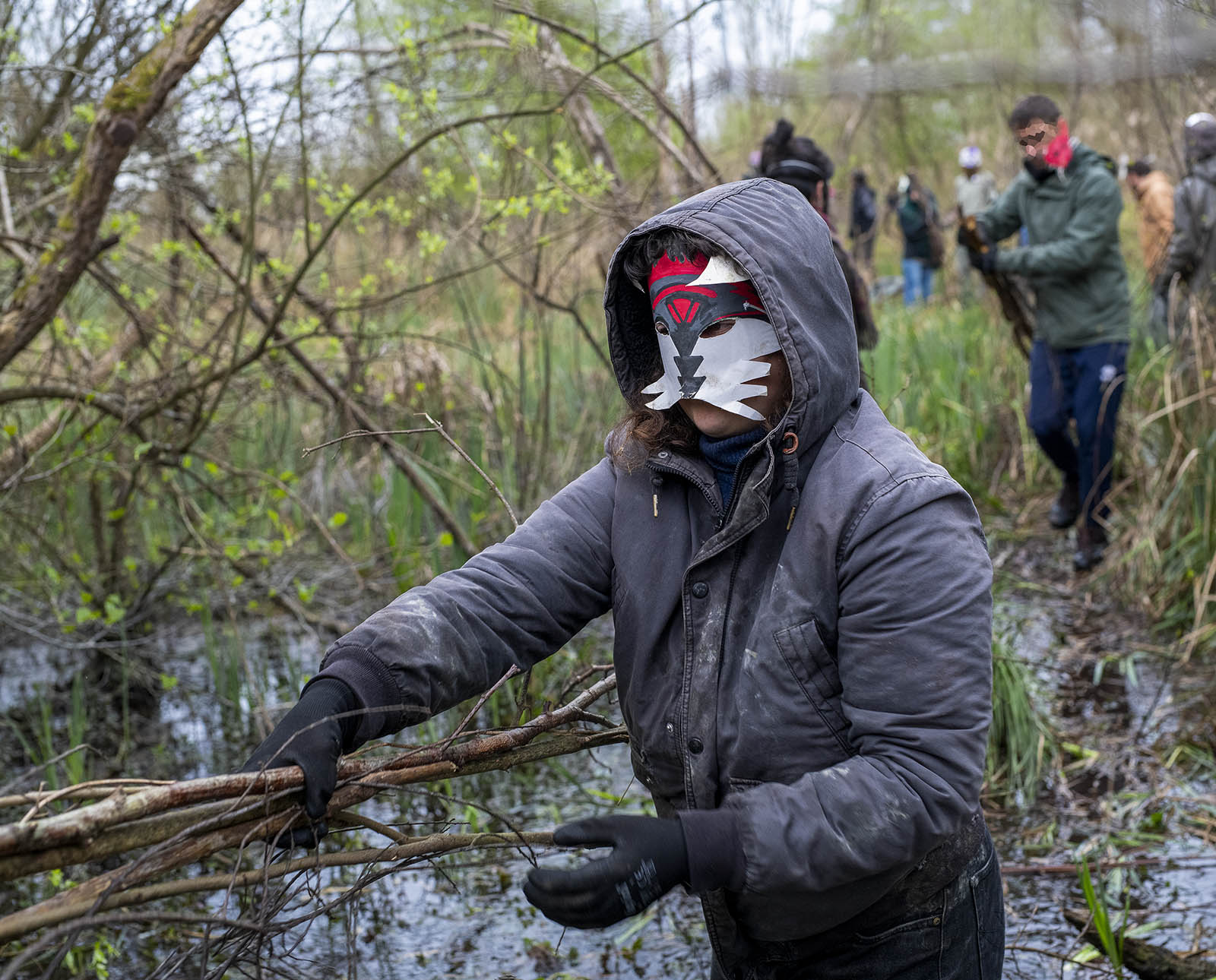 Action clandestine menée par les Naturalistes des Terres pour maintenir le niveau de l'eau dans la tourbière du Bourdet, Deux Sèvres, 10 avril 2023
