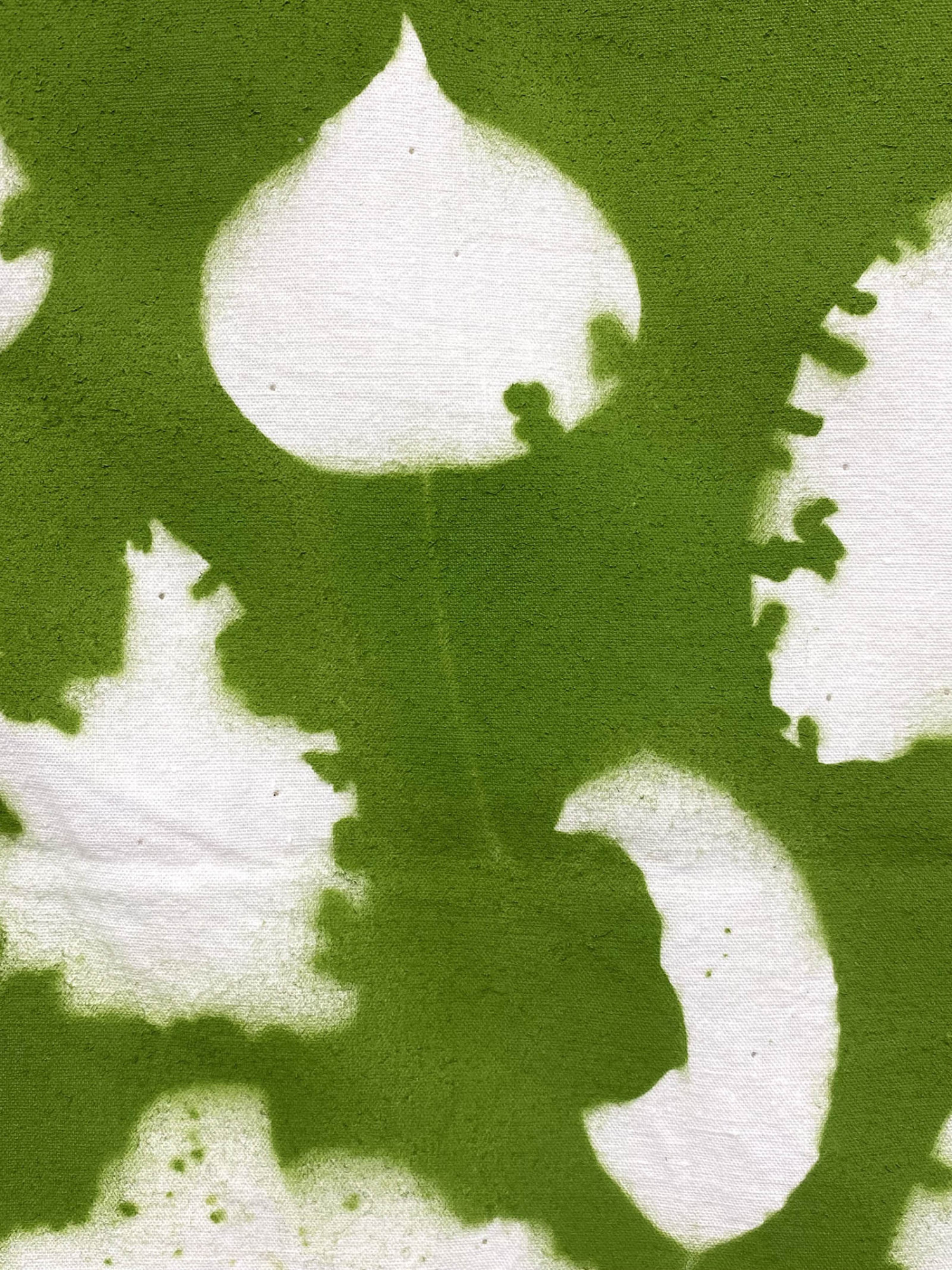 Michel Dector transforms numbers into mist, translating an infinity of abstract equations into paint. Numbers become his alphabet, constantly articulated in the turmoil of aerosol colors. Cotton sheets, spray paint, and masking tape are the tools he uses to materialize the ghosts of questioning, capturing imprints of leaves diseased or damaged by pests. "…Taking into account the various forms of life, human and non-human, not to erase their differences or homogenize them, but to perceive how they constitute varied modes and diverse modulations of a common life…"