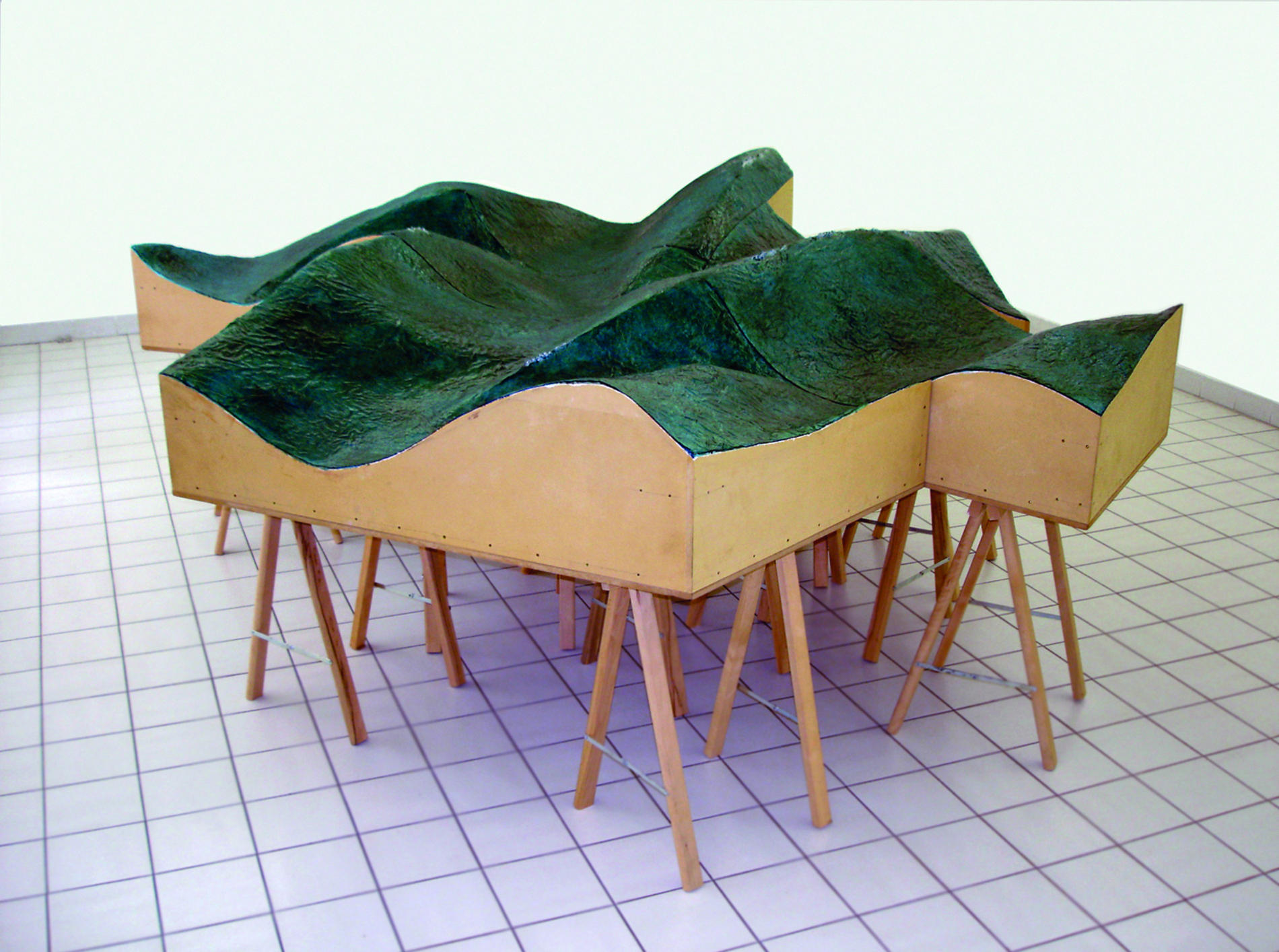 Bois, résine, peinture, 150 x 300 x 300 cm