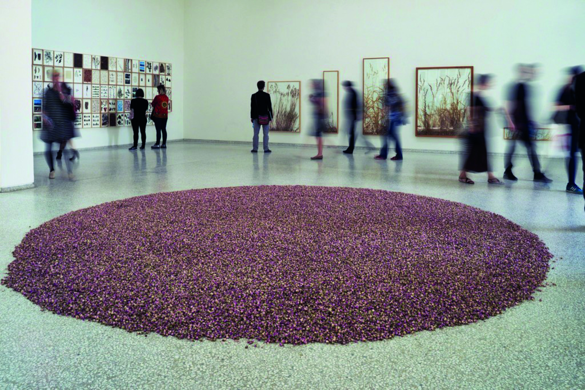 Installation au sol, 50 kg de roses séchées, 280 cm de diamètre